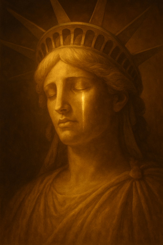 the Statue of Liberty stands still… and weeps. 😢